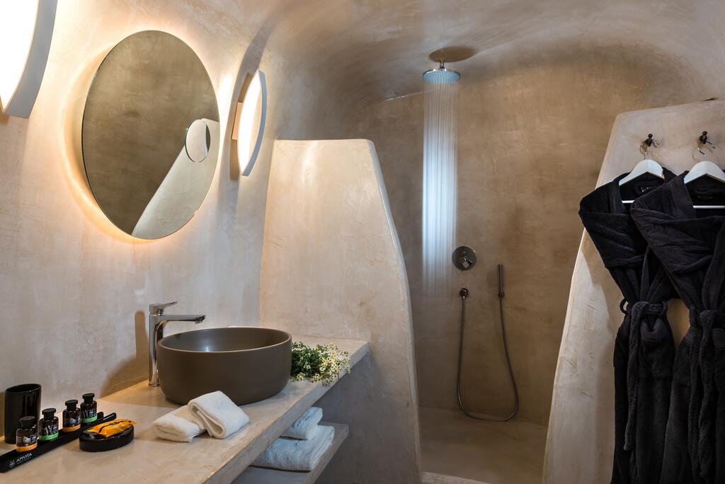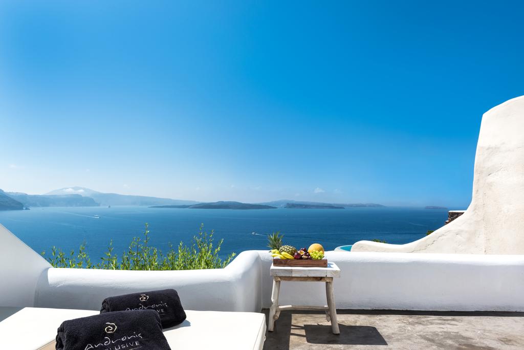 The suites of Andronis reflect the traditional Aegean style. Each suite is designed and decorated in a minimalist style and has a private furnished balcony with sea views. Other facilities include free Wi-Fi access, LCD TV, bathrobes and slippers, as well as a minibar with organic snacks.