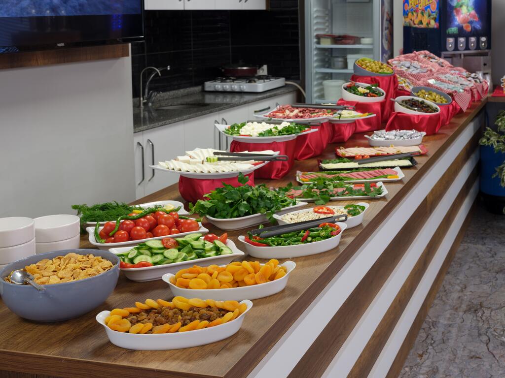 A buffet or halal breakfast is served at Grand Gulluk Hotel.