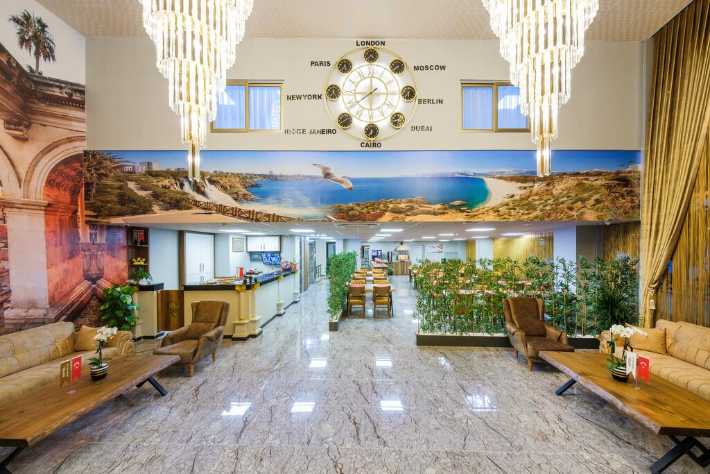 Located in Antalya, 800 meters from Mermerli Beach, Grand Güllük Hotel offers a restaurant, free private parking, shared lounge and garden. The property is 2.6 km from Antalya Museum, 3.9 km from Antalya Aquarium and 5 km from Antalya Aqualand. Rooms with city views feature air conditioning, a work desk and free Wi-Fi.