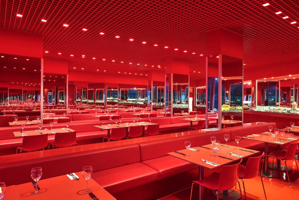 Food options range from Mediterranean to Japanese and world cuisines. Guests can enjoy snacks and drinks at the poolside restaurant and beach bar.