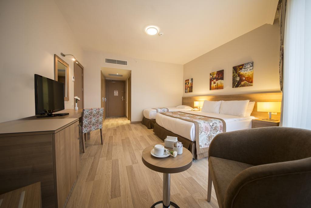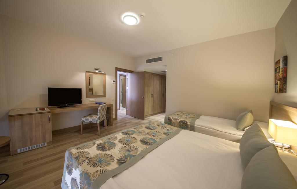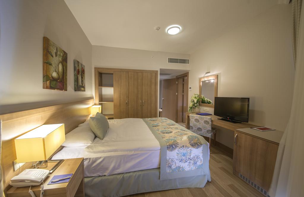Tastefully decorated in turquoise and brown tones, the rooms of Lara Family Club include air conditioning, satellite TV and a minibar. Some rooms also have a balcony and a separate living room.