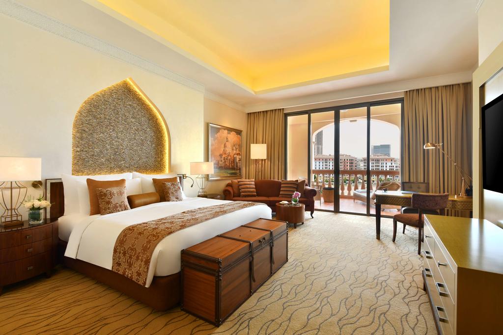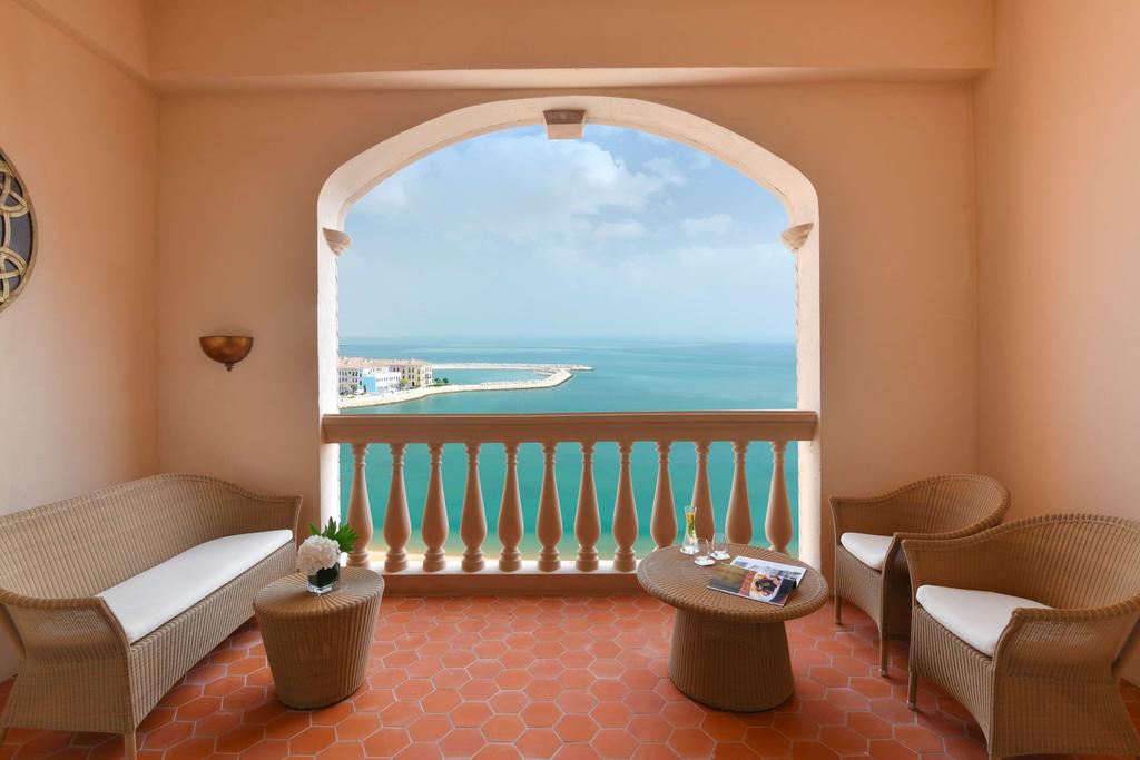 The resort's 281 rooms and suites all feature European architecture blended with traditional Arabian elements. Each room has a balcony or terrace overlooking the Persian Gulf, the Pearl Island or the resort's surroundings. The private bathroom with bathtub also includes a hairdryer and bathrobes.