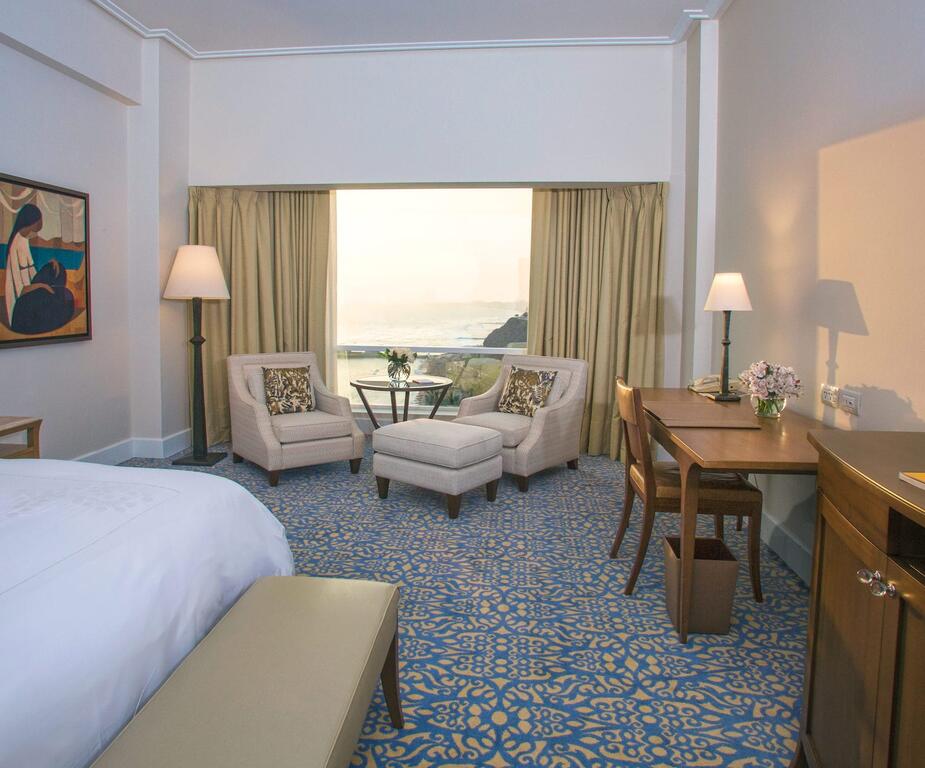 Rooms at Miraflores Park, A Belmond Hotel, Lima Hotel offer either panoramic ocean or city views. They have a seating area with cable TV, free WiFi and a minibar. Some rooms come with a private sauna and even a Roman bathtub.