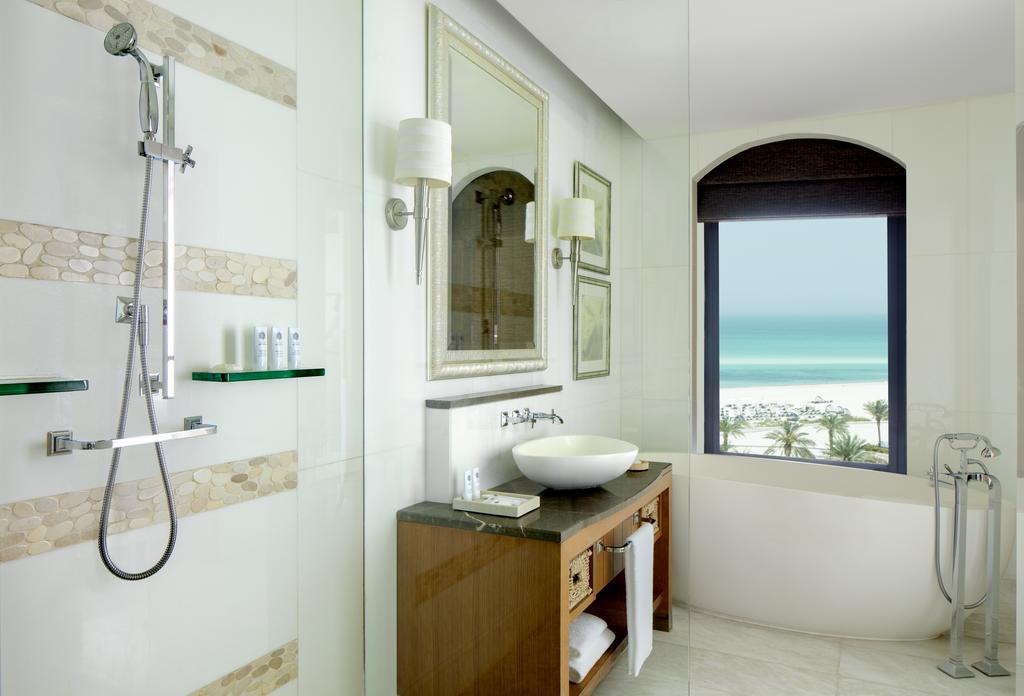 The St. Regis Saadiyat's spacious rooms feature Mediterranean-style décor, beds with luxurious duvets and pillows, TV and iPod docking station. The private bathroom includes a double sink, a free-standing bath, a rain shower and Remède toiletries.